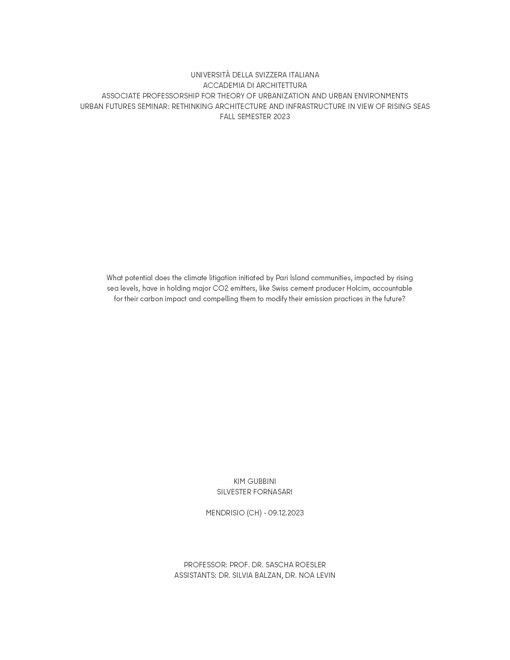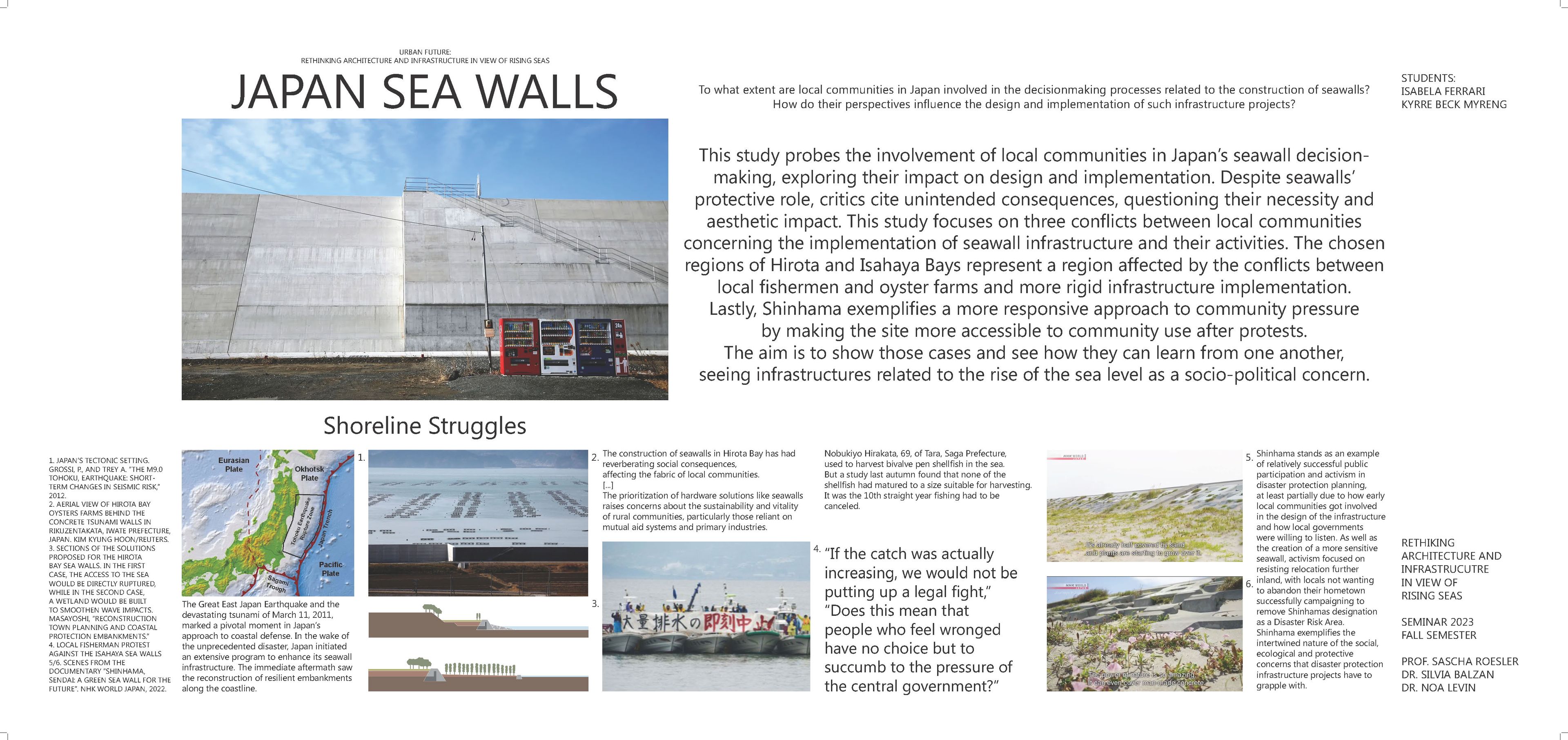 The research seminar explored architects' multifaceted roles in tackling these challenges, emphasizing the interdisciplinary nature of contemporary design. Inspired by Donna Haraway's idea that "scientific facts and speculative fabulations need each other," the seminar urged students to blend scientific knowledge with imaginative ideas, crucial for adapting architecture, infrastructure, and urban planning to impending sea level rise.
